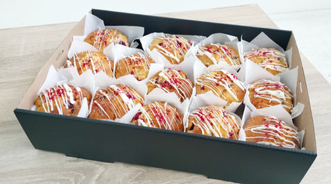 Option #3: Pasta salad box, raspberry & white chocolate muffin, fruit $13 each